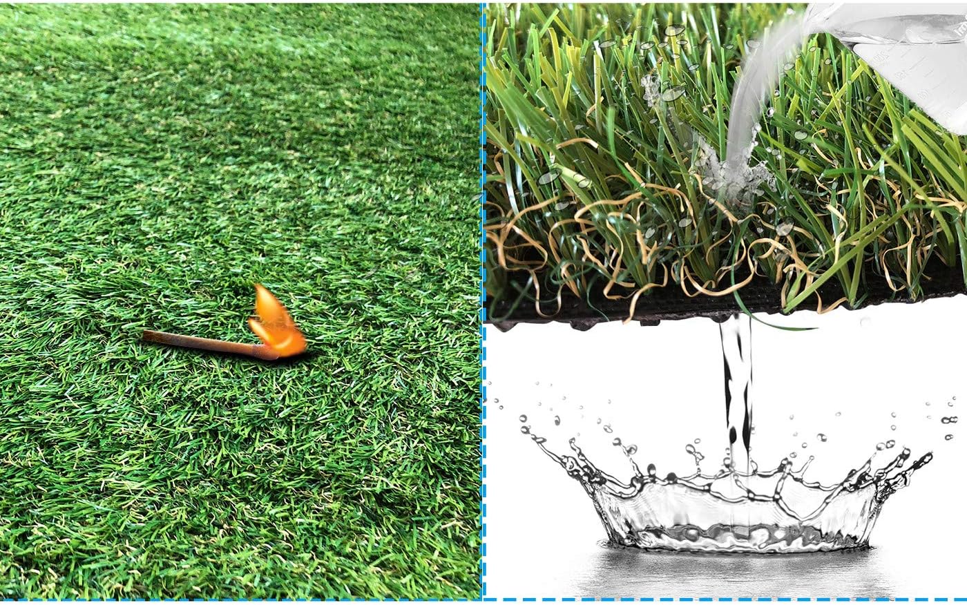A: Yes,this synthetic grass is designed to withstand all weather conditions. We tested it through different weather scenarios, and it held up wonderfully. The rubber backing with drainage holes ensures quick drying, preventing water from pooling and keeping the surface usable no matter the weather.