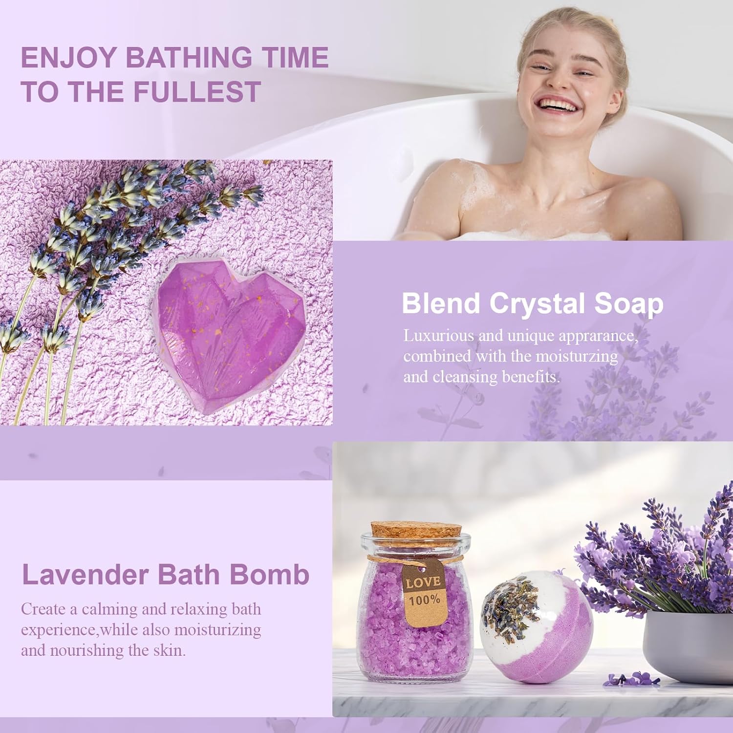 In addition to these delightful essentials, we discover charming personalized extras that add an extra layer of thoughtfulness. The purple handmade knitted flower is not only unique but also serves as a sweet keepsake. A gentle soap ensures gentle self-care, while the included card allows us to pen a heartfelt message to let our best friend know just how much she means to us. Together,these components come packaged in an elegant purple box,making it feel like an extra special surprise.